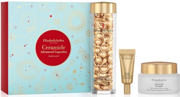 The anti-aging Twist and Lift skincare gift set features precision treatments for your skincare concerns. Target your needs, twist open a capsule and treat your skin. Skincare set includes 90-piece Advanced Ceramide Capsules, a daily essential for skin barrier repair and the foundation of youthful skin. This holiday gift set also includes the Advanced Ceramide Lift and Firm Day Cream and Advanced Ceramide Lift and Firm Eye Cream. The Twist & Lift Set is one of the best gifts for the skincare lover on your list. Treat them to the best anti-aging skincare from Elizabeth Arden. Set Value: £155 Set Contents: 90-piece Advanced Ceramide Capsules 90pc Advanced Ceramide Lift and Firm Day Cream 50ml Advanced Ceramide Lift and Firm Eye Cream 5ml