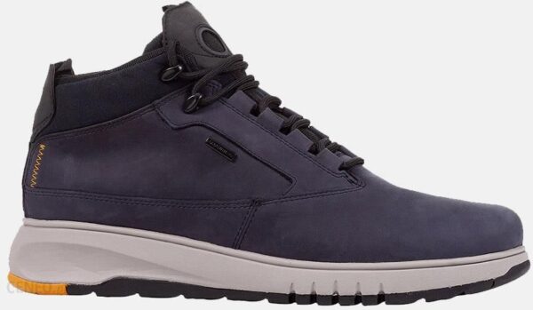Botki męskie wodoodporne ze sznurowadłami, ze skóry w granatowych kolorach,z żółtym detalem na podeszwie. Aerantis™ 4X4 ABX opiera się na niezwykle nowoczesnej podeszwie zewnętrznej. (Skład :70% skóra, 11% syntetyk, 19% tkanina)