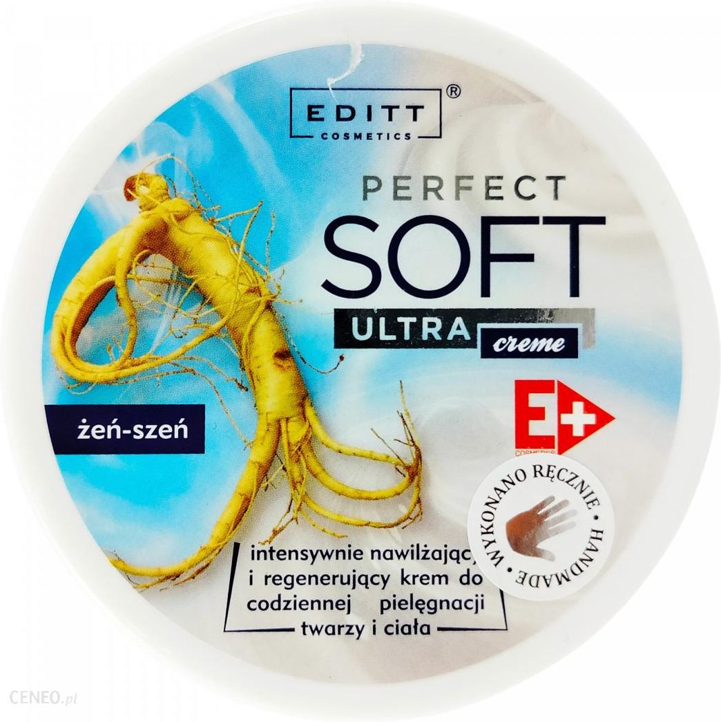 NAWILŻAJĄCY KREM DO TWARZY i CIAŁA Z ŻEŃ-SZENIEM, PERFECT ULTRA SOFT EDITT COSMETICS 150GIDEALNE NAWILŻENIEIdealnie nawilżona skóra już po jednym użyciu! Oparty na oryginalnej recepturze przywraca aksamitną gładkość i jedwabistą miękkość skóry.Niezwykła moc naturalnych ekstraktów doskonale pielęgnuje skórę, widocznie poprawiając jej jędrność i odżywienie.IDEALNY DLA TWOJEJ SKÓRYPERFECT ULTRA SOFT KREM NAWILŻAJĄCY Z ŻEŃ-SZENIEM -Intensywnie nawilżający krem do codziennej pielęgnacji twarzy i ciała.Głównym składnikiem tego produktu jest ŻEN-SZEŃ.Żeń–szeń widocznie upiększy skórę – niezależnie od jej typu i wieku.Skutecznie dotlenia skórę, przywracając zszarzałej cerze witalność i naturalne rozświetlenie